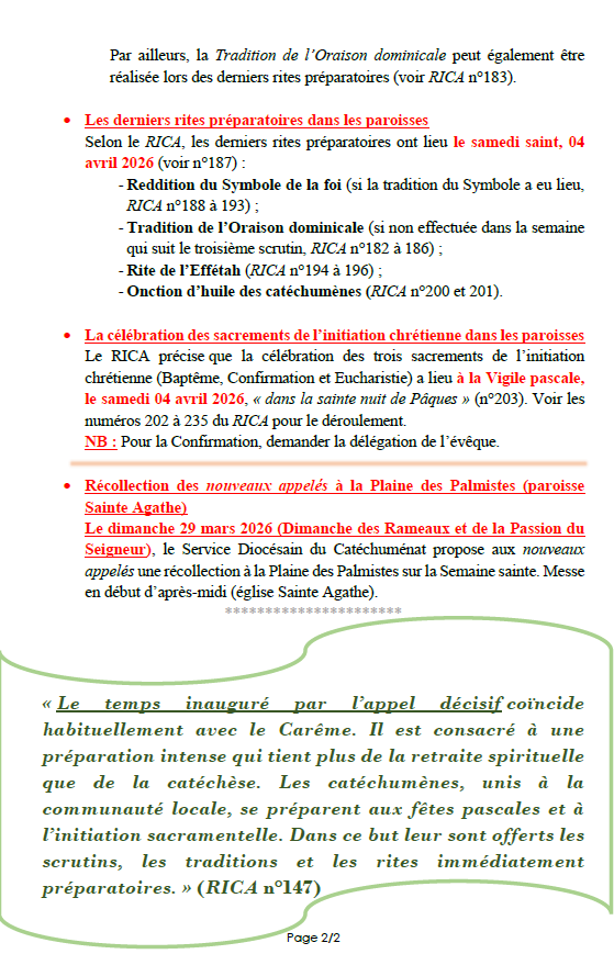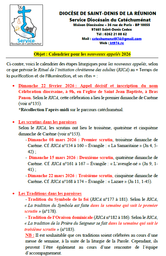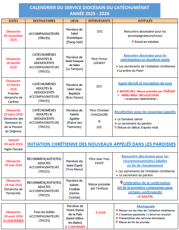 CALENDRIER DU SERVICE DIOCÉSAINE DU CATÉCHUMÉNAT 2025/2026