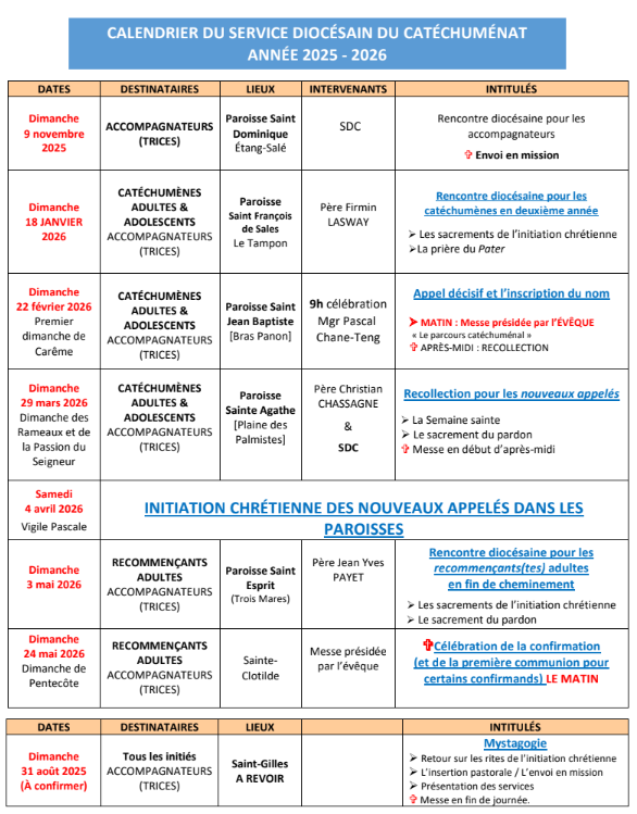 CALENDRIER DU SERVICE DIOCÉSAINE DU CATÉCHUMÉNAT 2025/2026