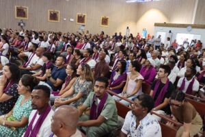 Dimanche 10 novembre 2024 / Étang-Salé Plus d’une centaine d’accompagnateurs(trices) du catéchuménat se sont retrouvés ce dimanche 10 novembre 2024, à la Maison du pèlerin,